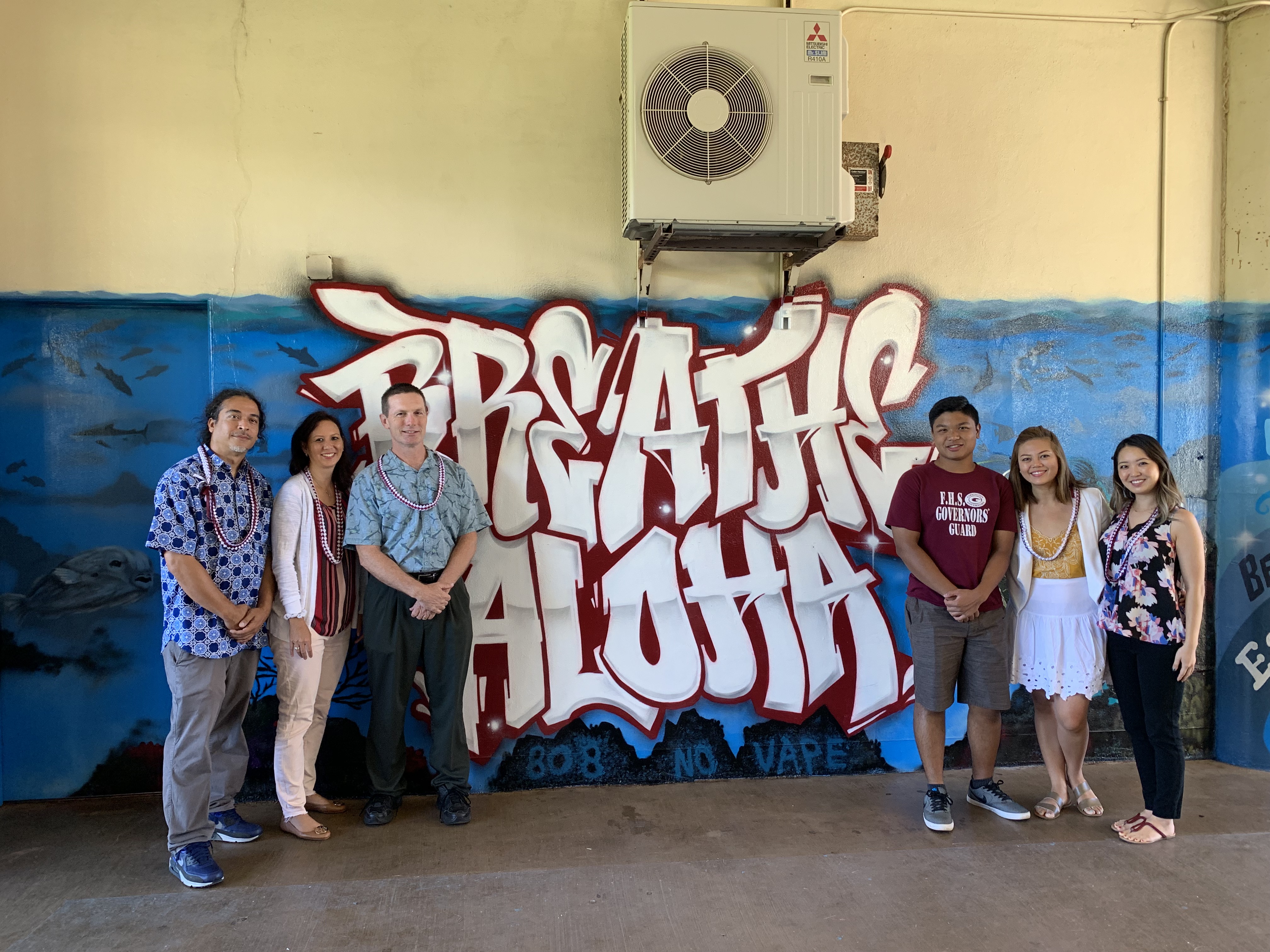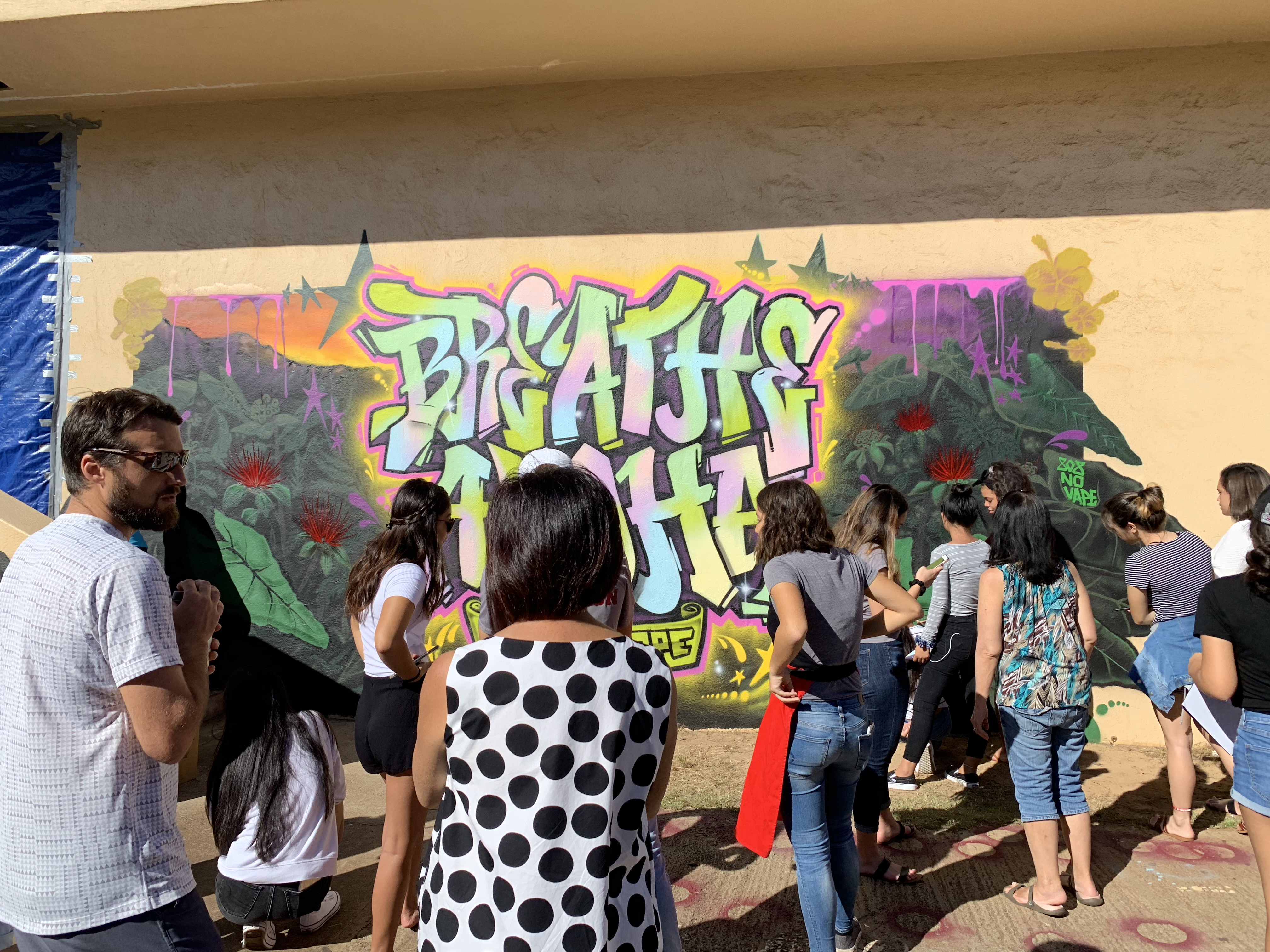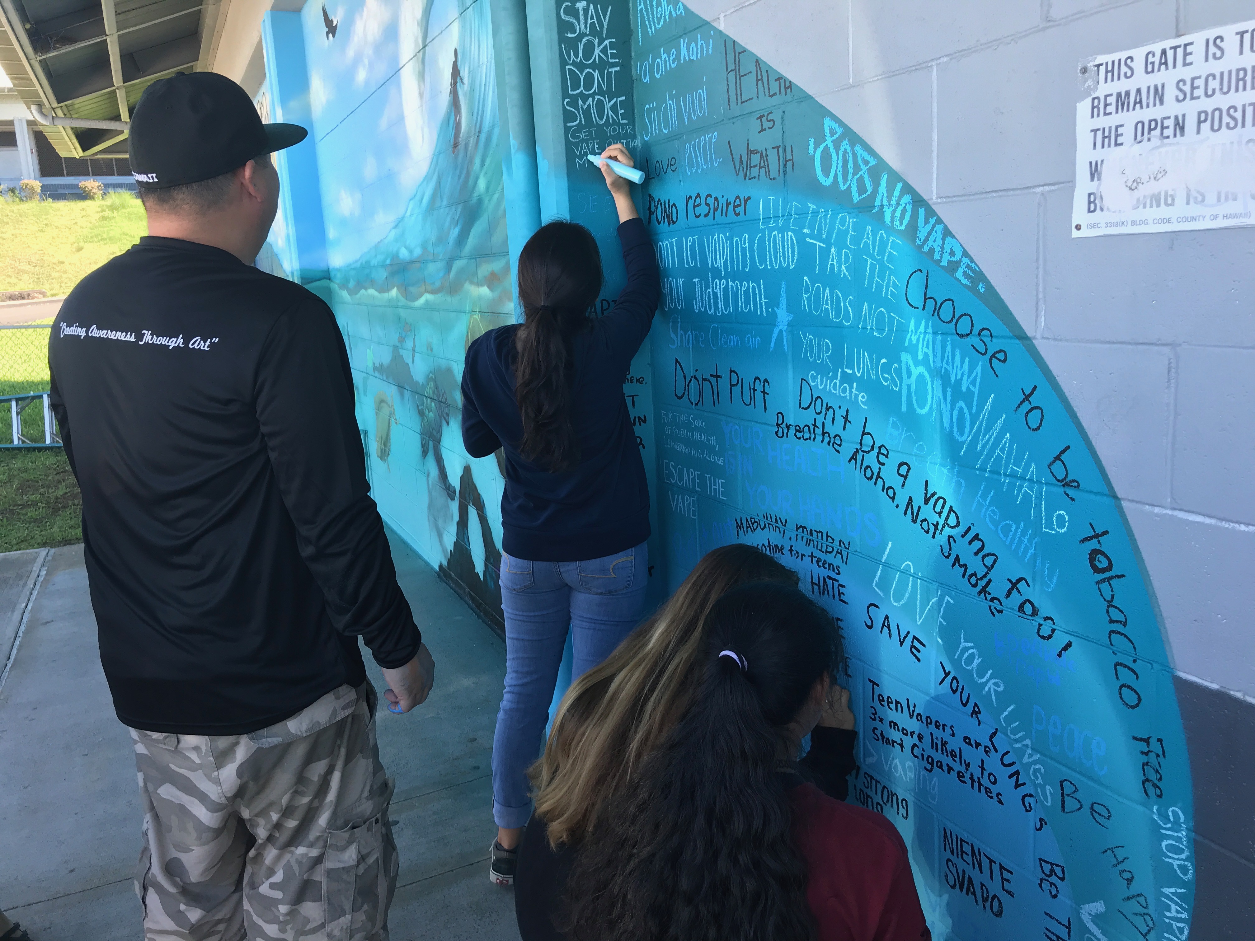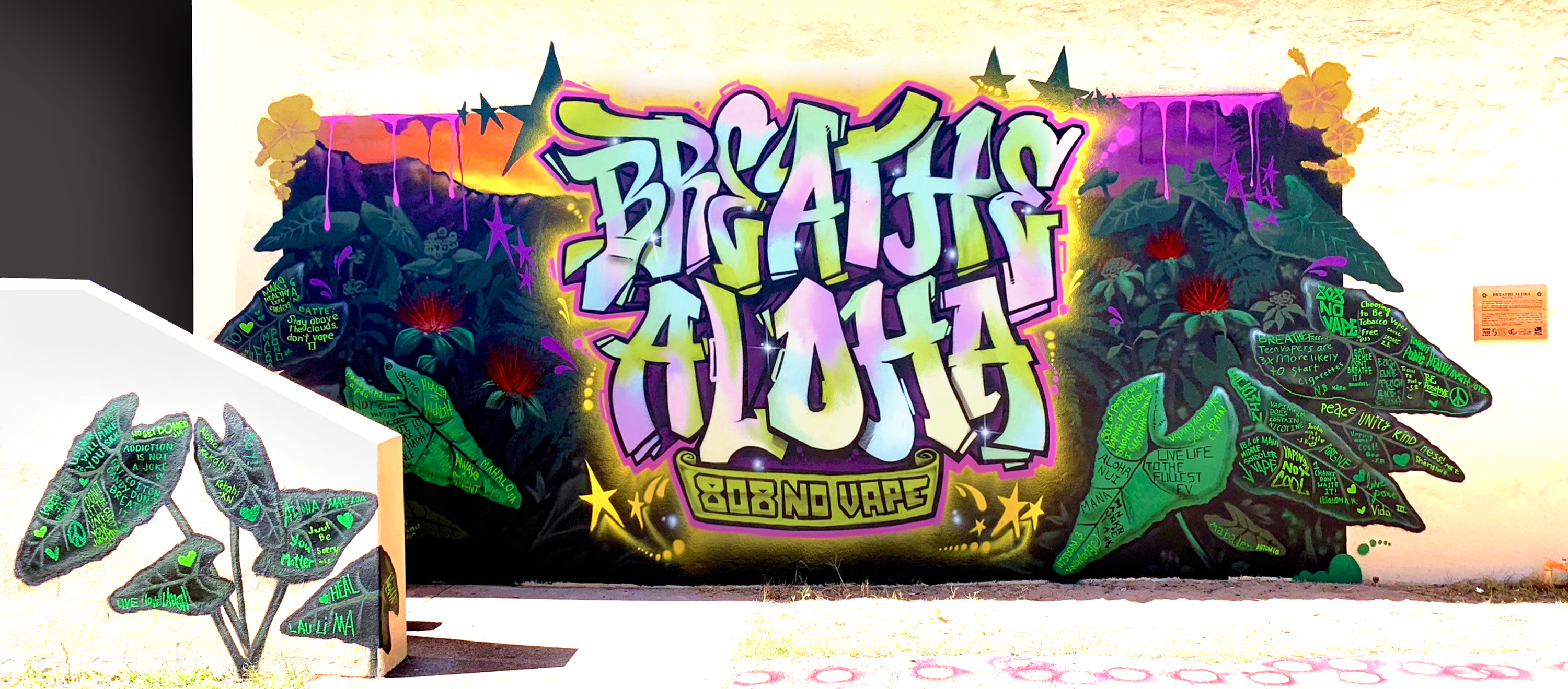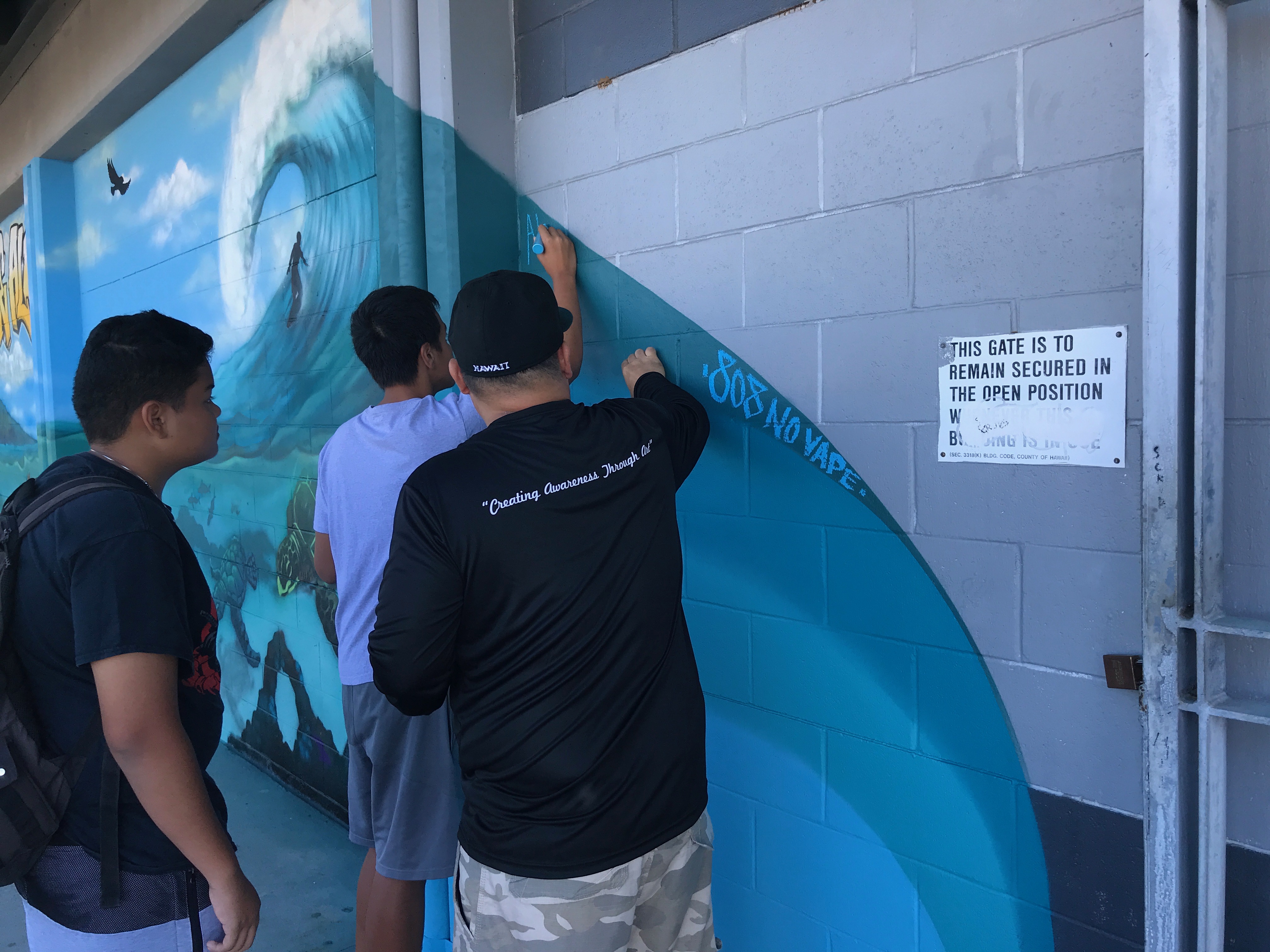 The 808 No Vape organization, within the Hawai’i Tobacco Prevention & Control Trust Fund organization, is proud to have sponsored large-scale youth collaborations at Baldwin High, Kealakehe High & Farrington High Schools full-colored awareness-focused murals within their campuses so far. These school murals are included in the first part of the mural tour, set to complete an additional 3 murals by early 2019. Organizers focus on awareness & prevention to combat the vape industry marketing & promote healthier choices for the youth & adults (both users & those considering due to peer pressure). Ultimately, they hope to reverse the disturbingly soaring trend of vape use in the Hawaiian Islands.