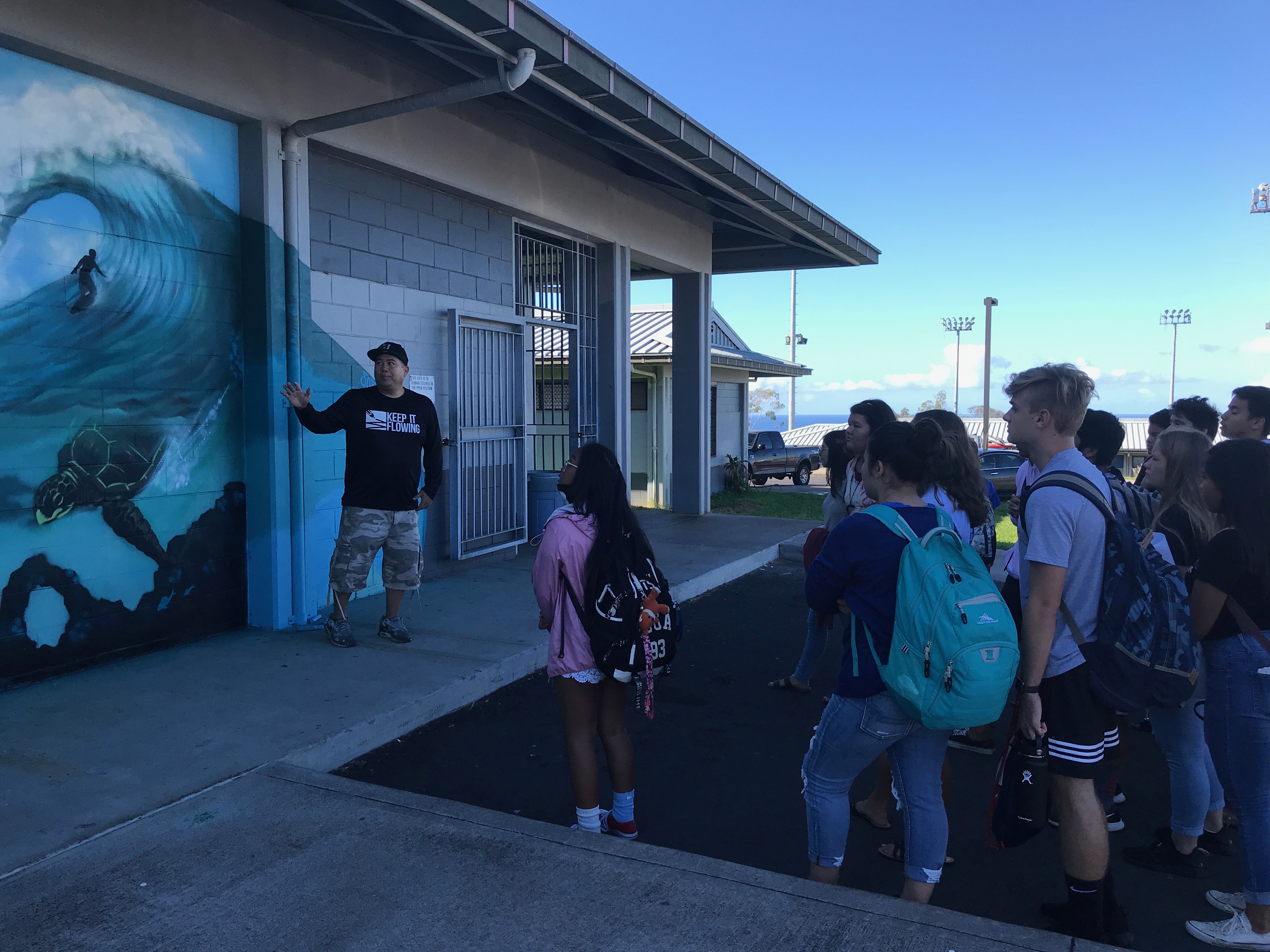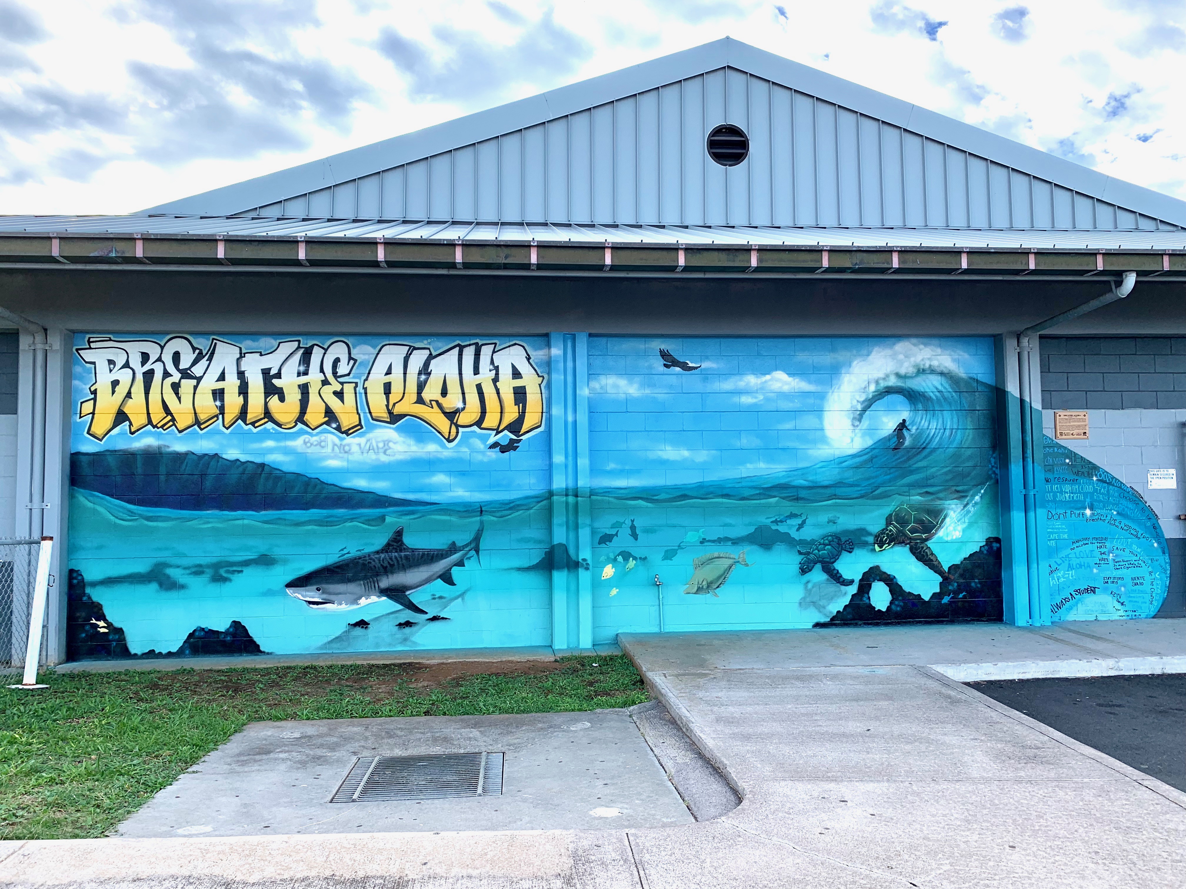 Starting October 30th, Keep It Flowing collaborated to produce the first mural at Baldwin High School in Maui. Collaborators include students: the talented artistic contributors & the equally talented Hawaiian Club with Kumu Hulali Silva, as well as faculty & staff: thank you Diane Omura, Health & Peer Educator, Principal Katherine Kilborn & Les Vida, Head Custodian who helped organize this project.