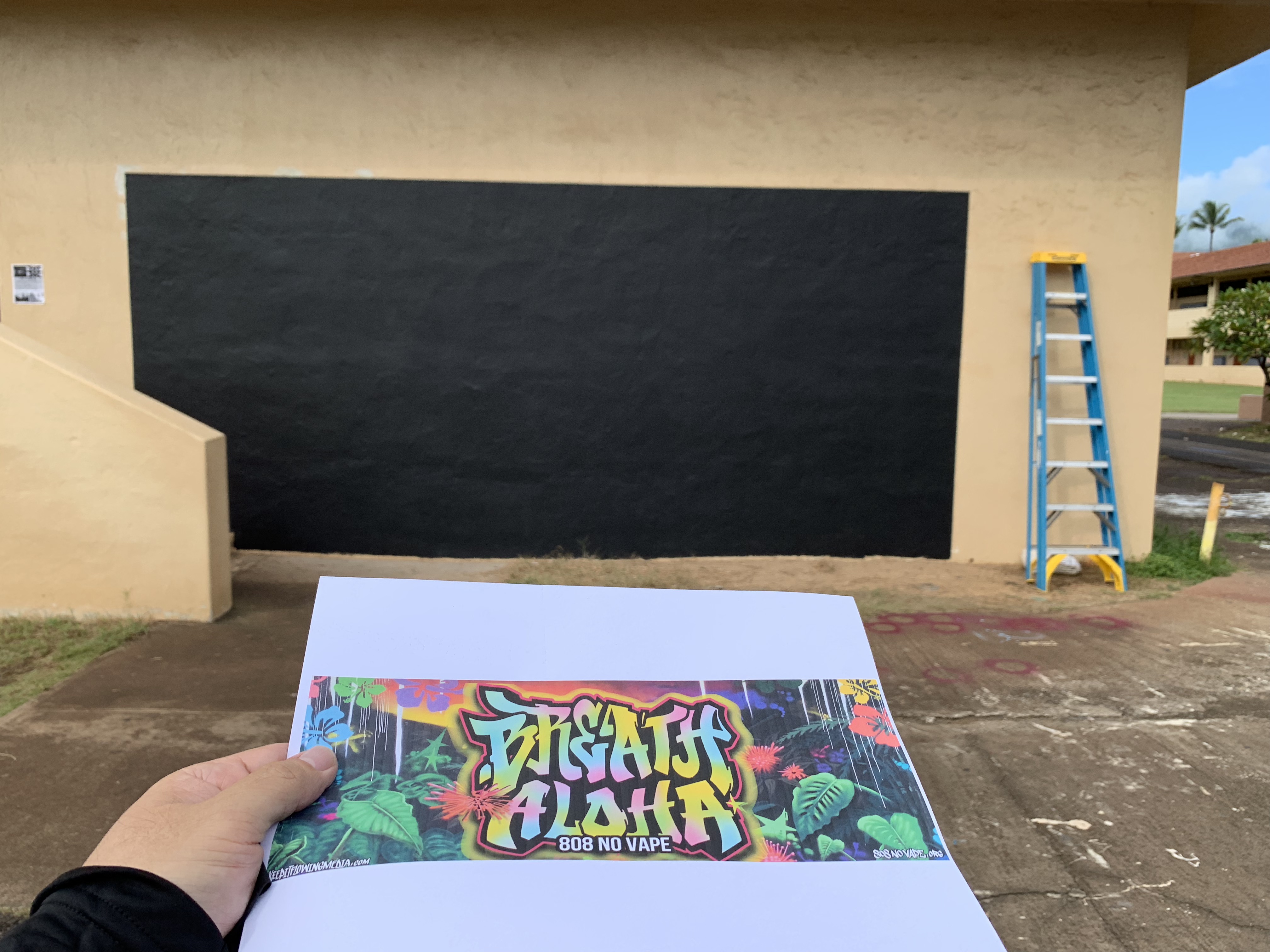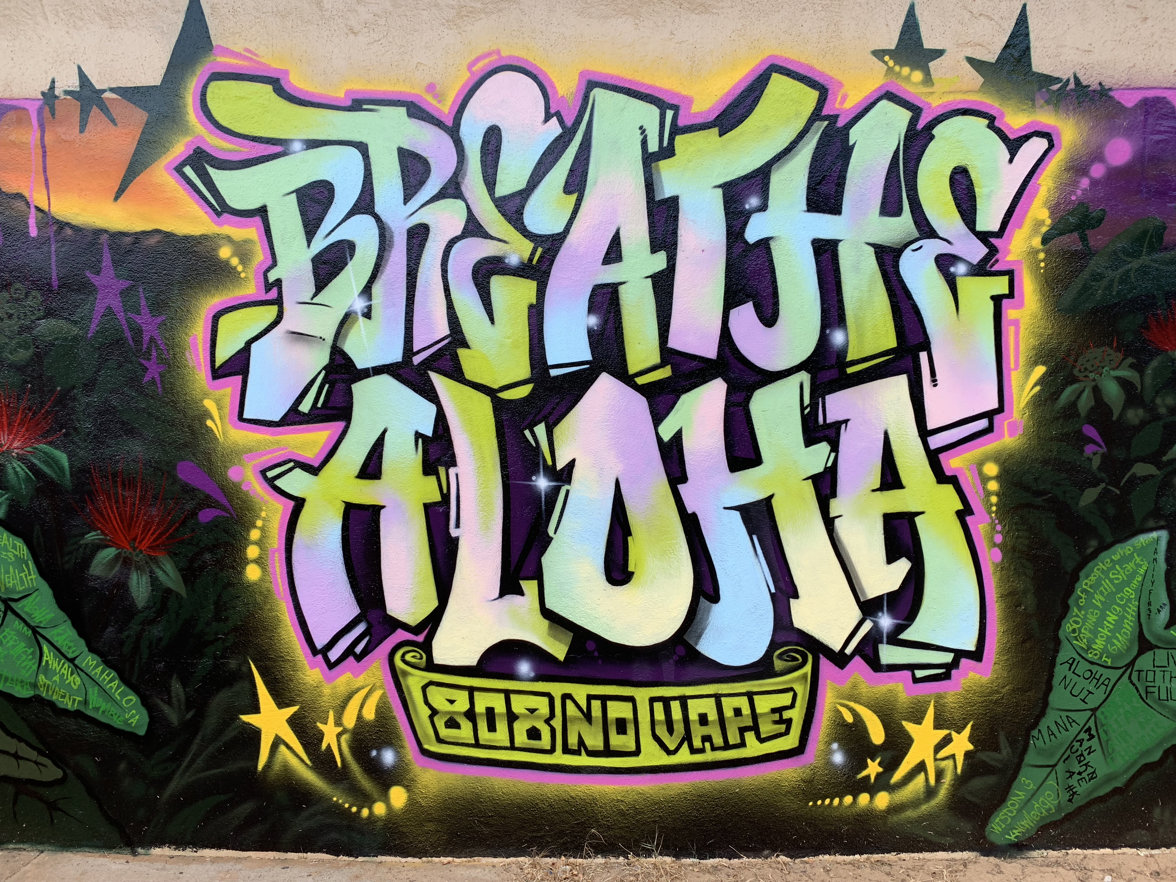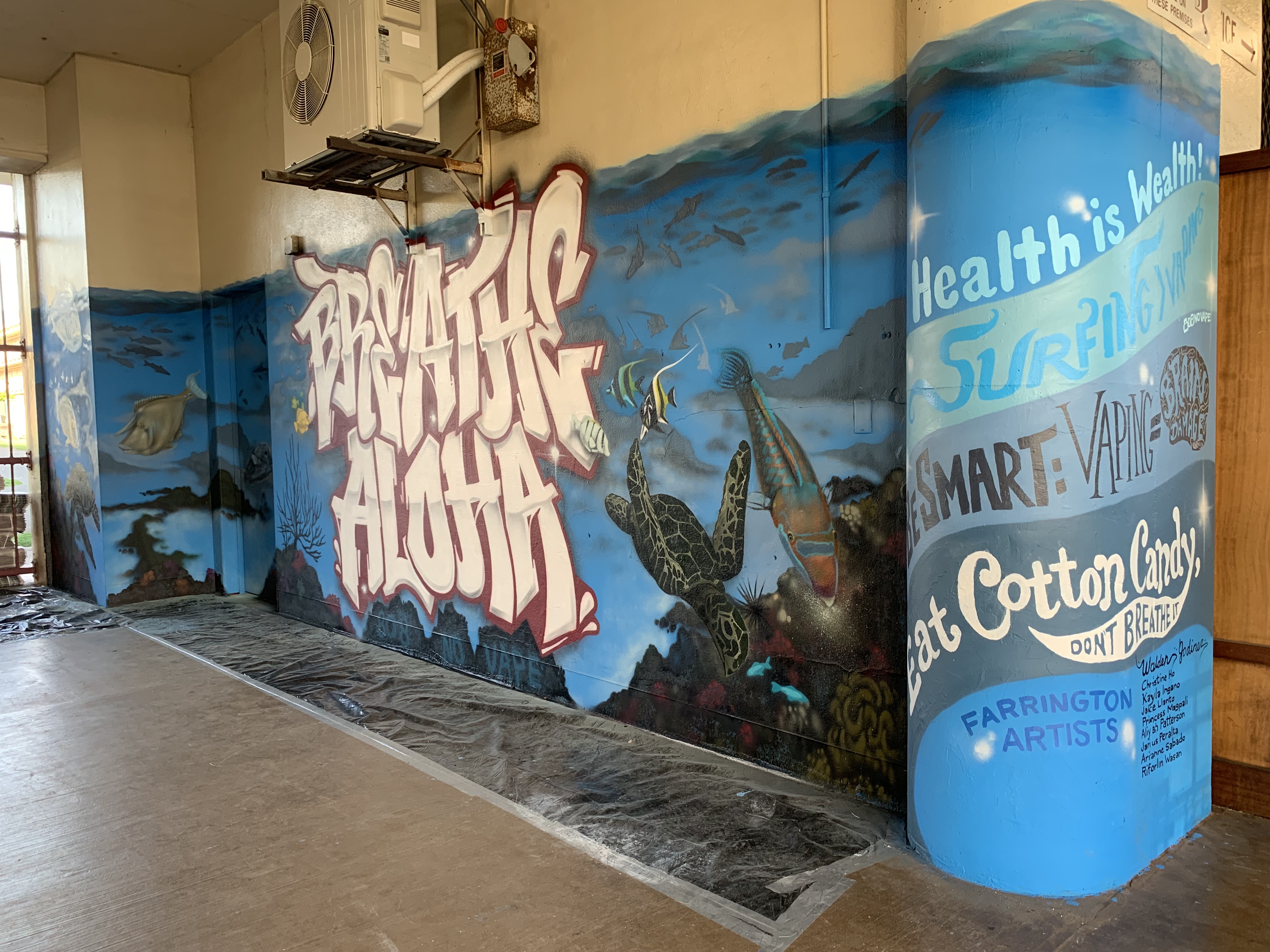 All murals so far have been in partnership with 808 Not Vape. Mahalo to Jessica Yamauchi, Executive Director of Hawai’i Public Health Institute, for approving this project, Scott Stensrud, Statewide Youth Coordinator for the referral from HPPUD & Kevin Ramirez, Youth ESD Prevention Project Coordinator, for all your hands’ on assistance! This project couldn’t have been successful without you!