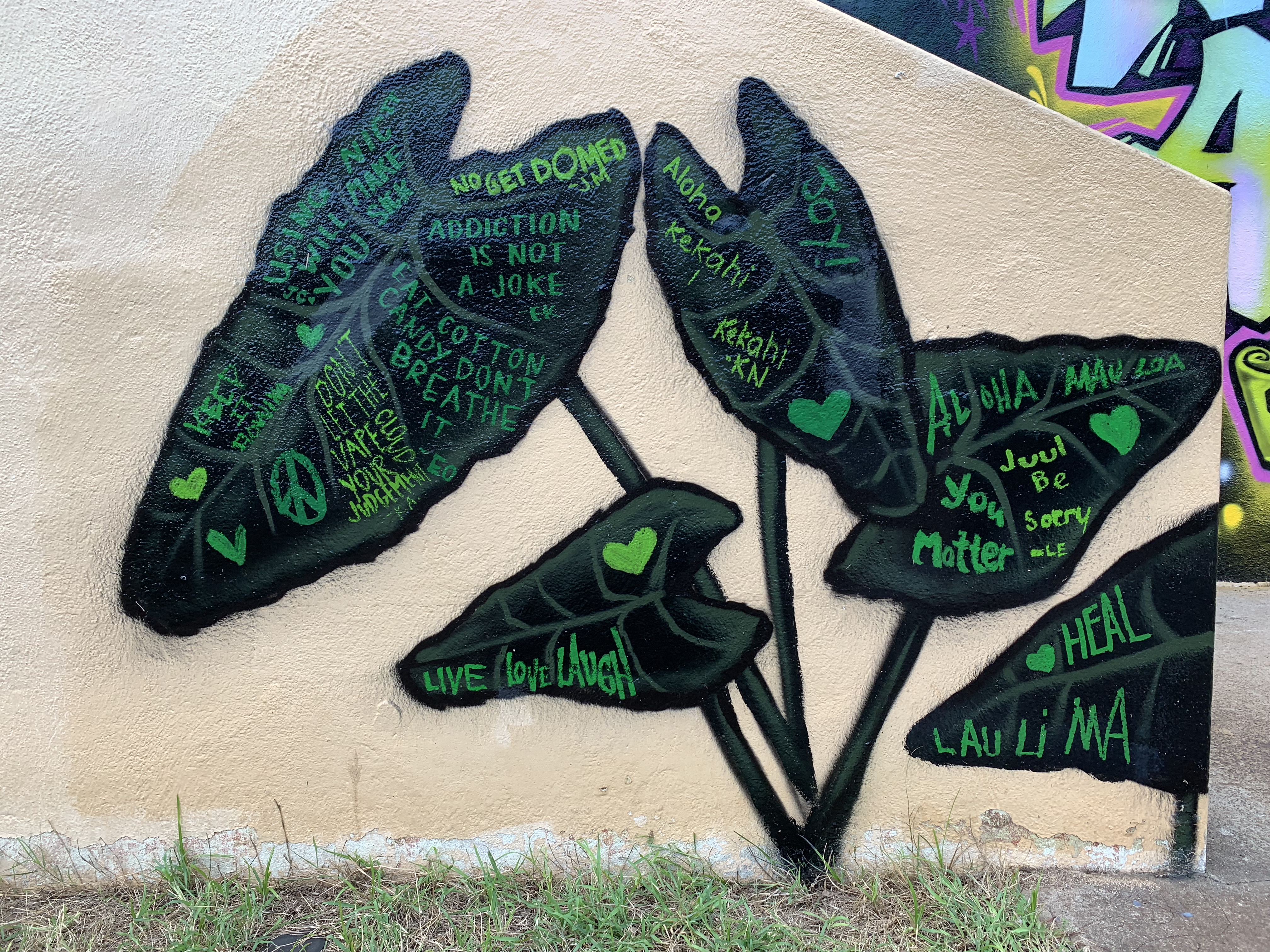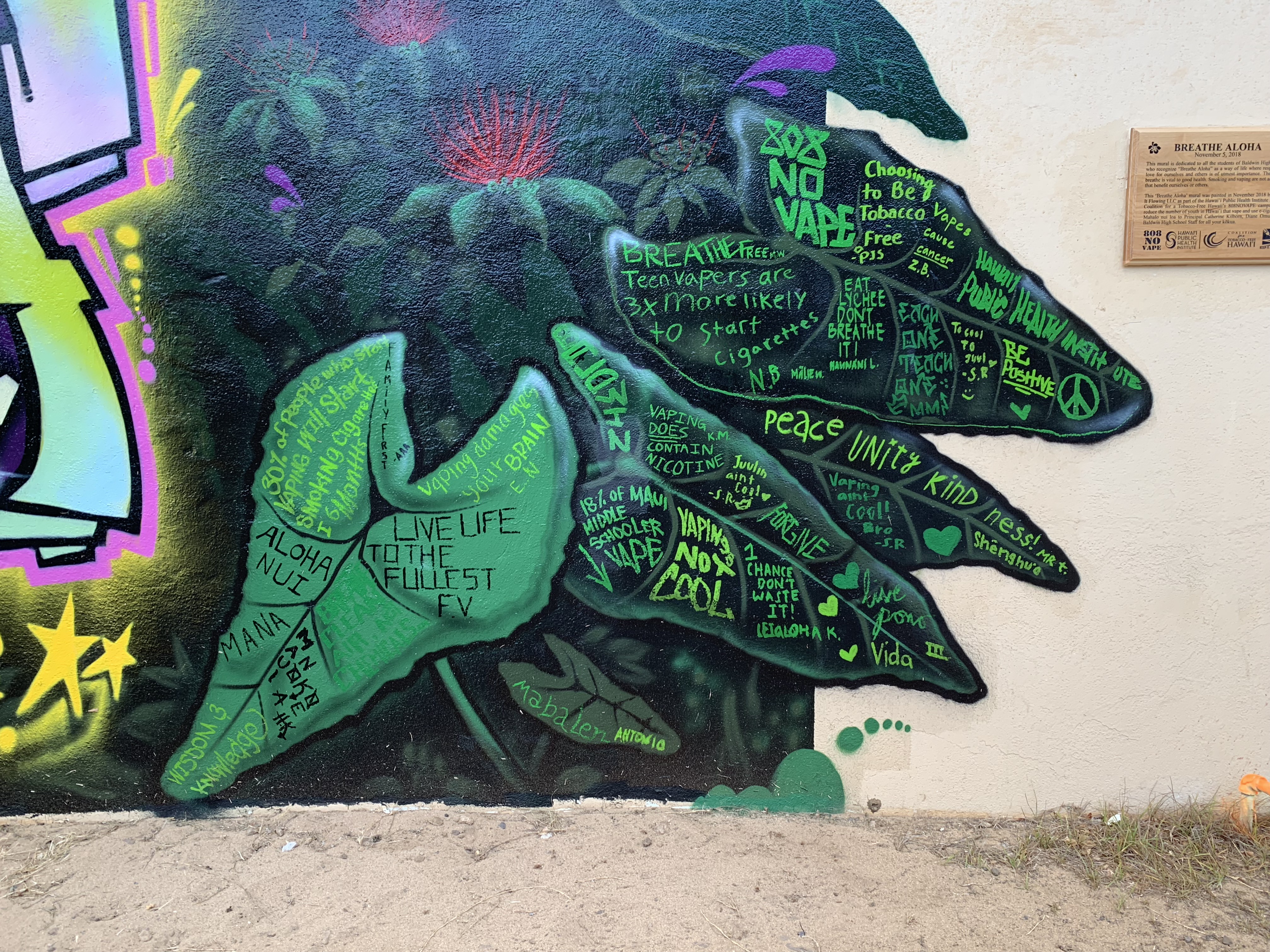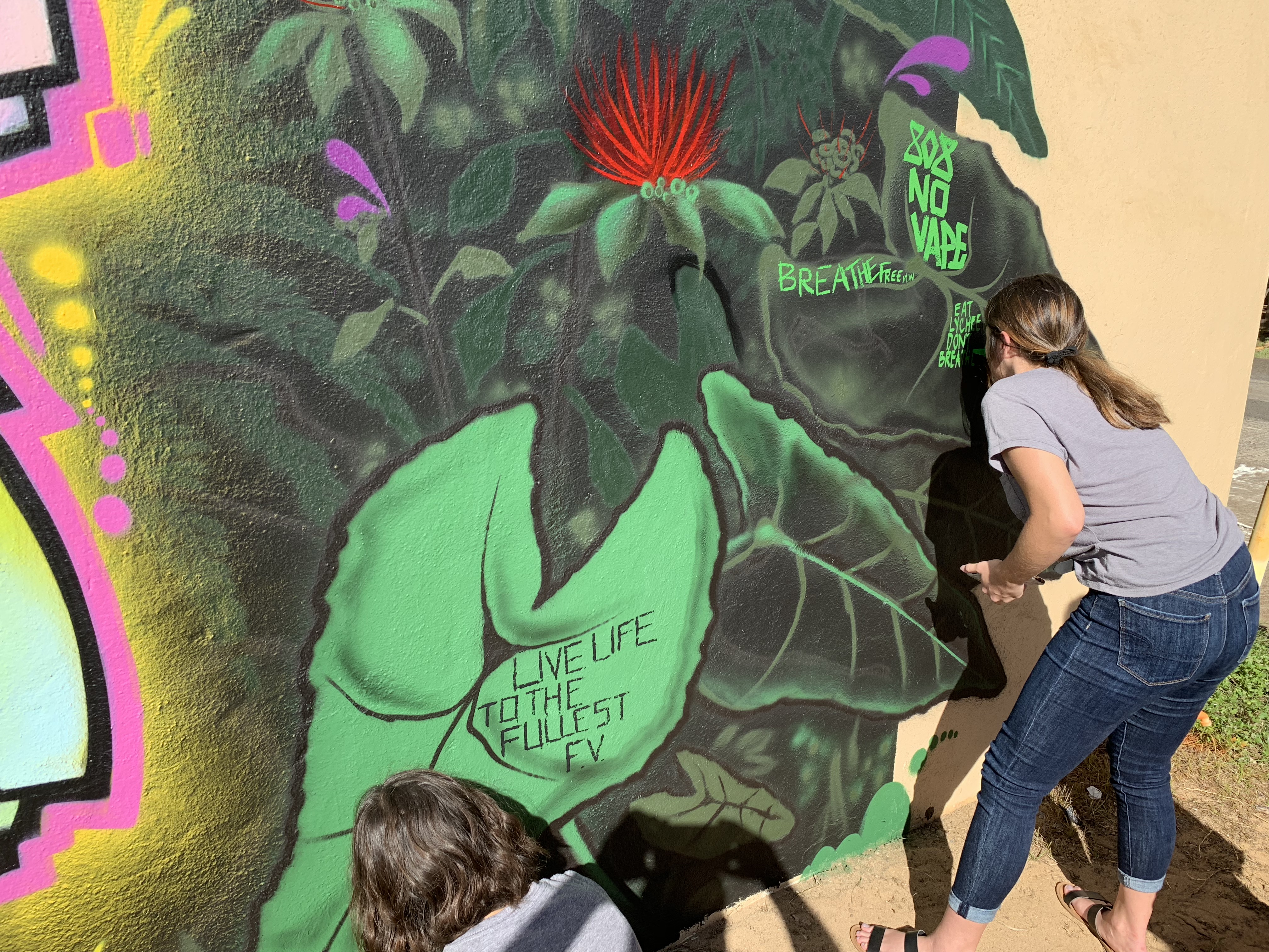 All murals so far have been in partnership with 808 Not Vape. Mahalo to Jessica Yamauchi, Executive Director of Hawai’i Public Health Institute, for approving this project, Scott Stensrud, Statewide Youth Coordinator for the referral from HPPUD & Kevin Ramirez, Youth ESD Prevention Project Coordinator, for all your hands’ on assistance! This project couldn’t have been successful without you!