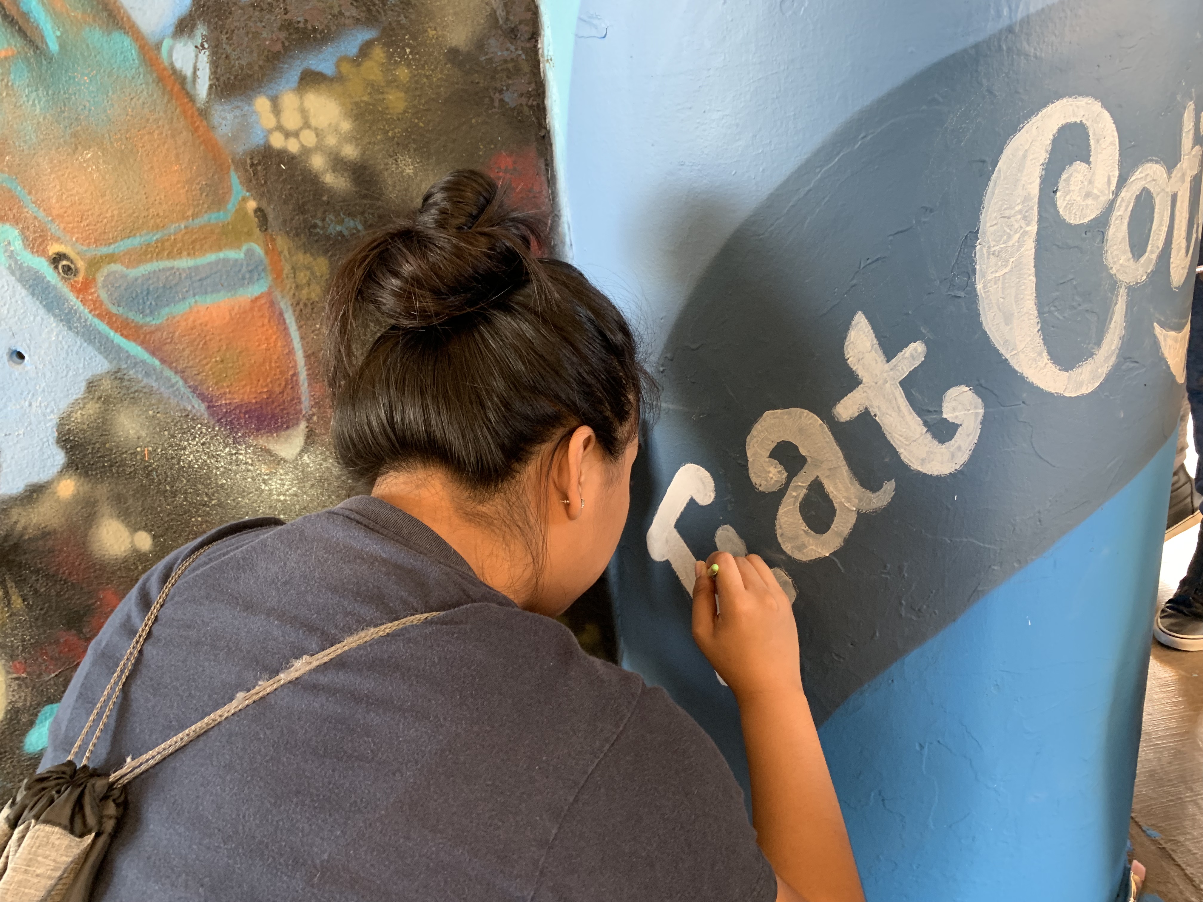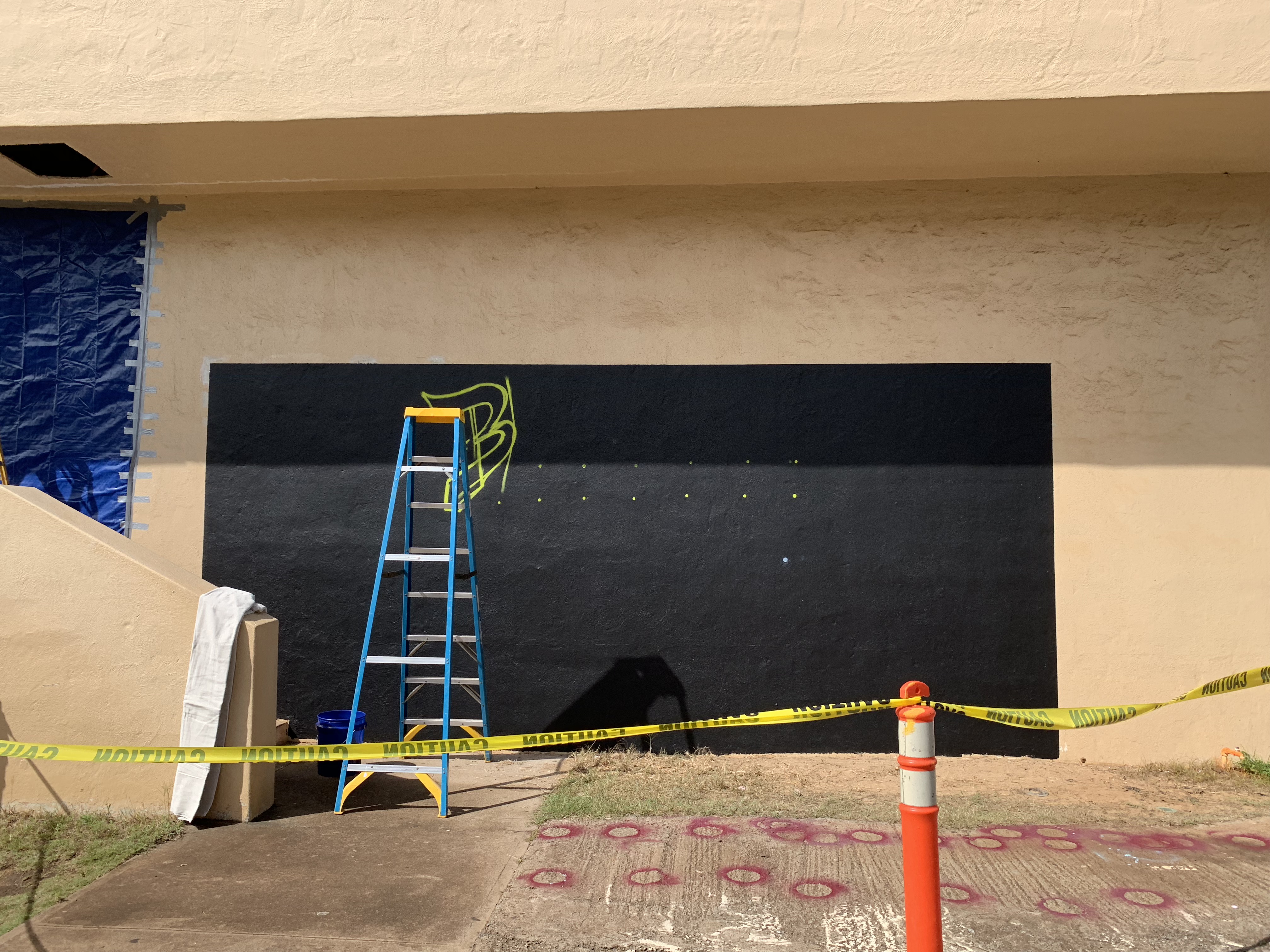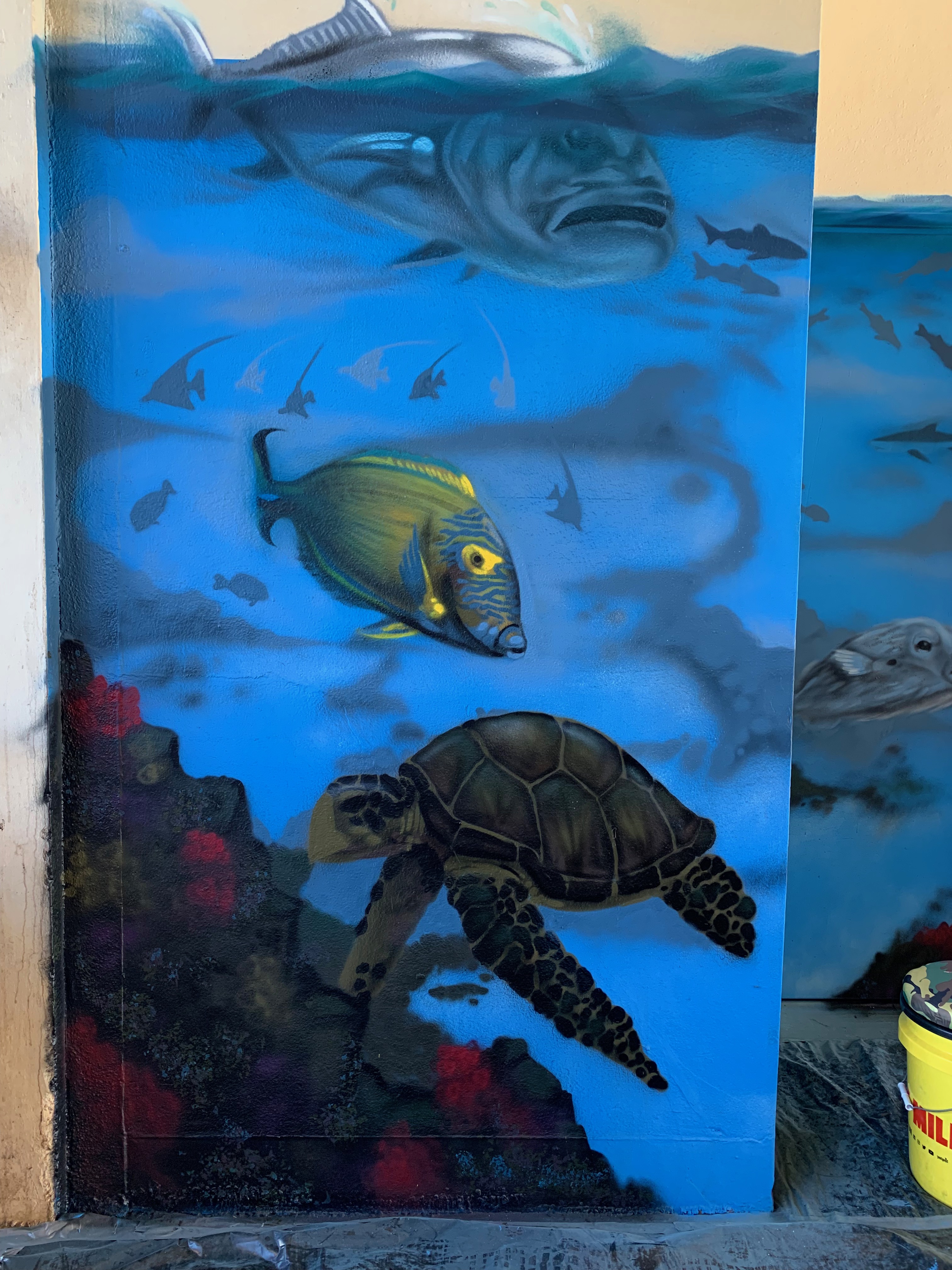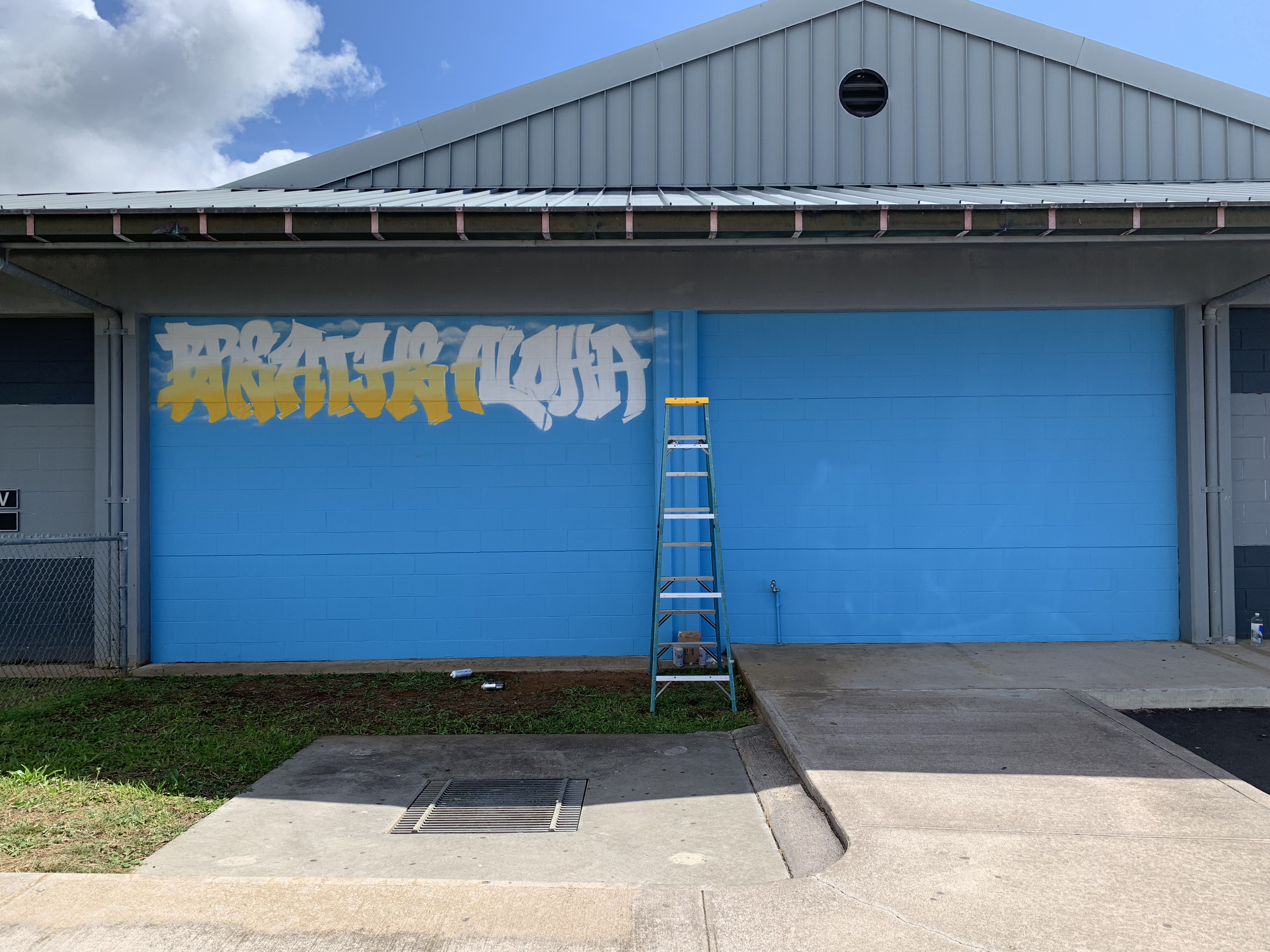 On November 5th, our creative director was off to start the next mural on Hawai’i Island with Kealakehe High School. This painting collaboration could not have happened without the pre- & post-blessing of the project by Kumu Keala Ching & her 6-year old niece, the students that all contributed their art, efforts & time, volunteer Scotty Tanihuchi; thank you for ALL your help, Principal Glenn Gray & long-time friend of Keep It Flowing, Joe Baxter.