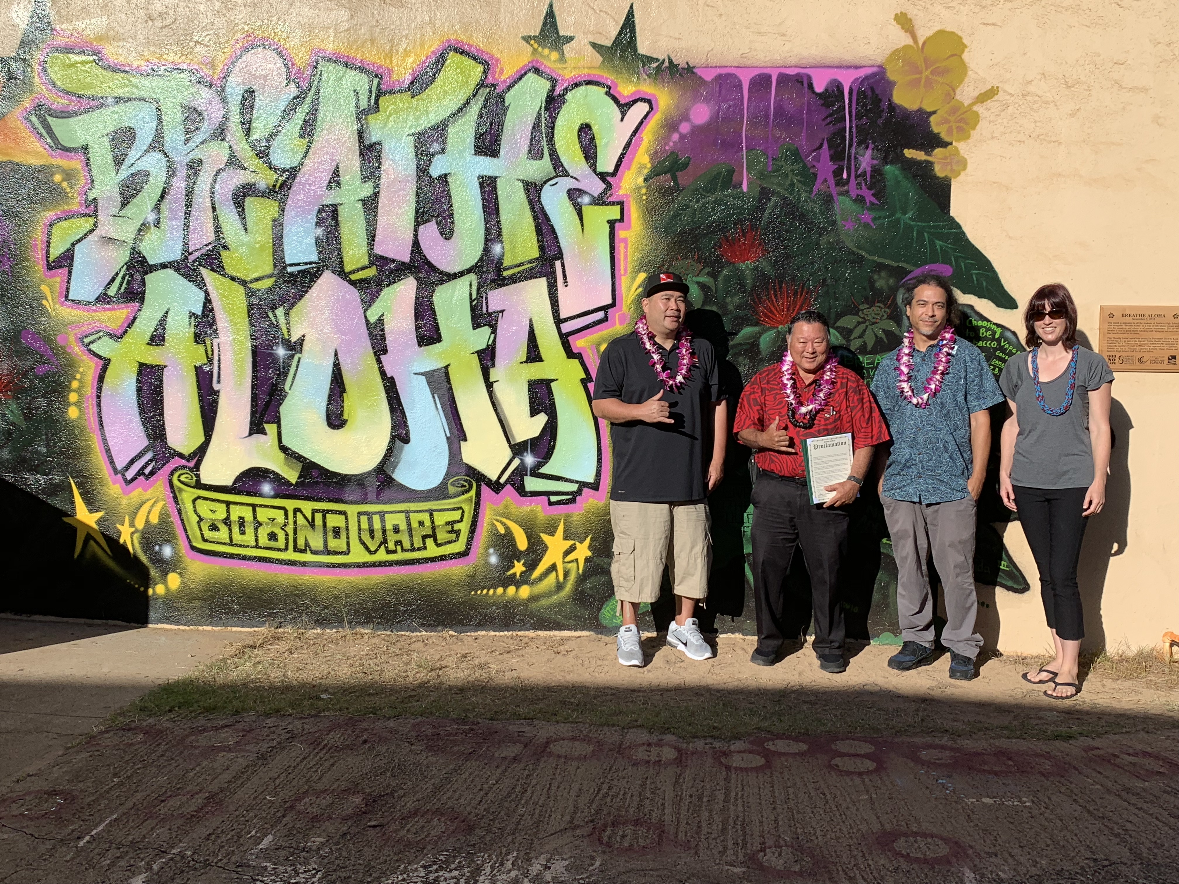 Mayor Alan Arakawa blessed Keep It Flowing with a signed Proclamation at the unveiling of the Baldwin High School No Vape mural, hosted by Kevin Ramirez who shared a vaping-prevention presentation. Thank you so much!