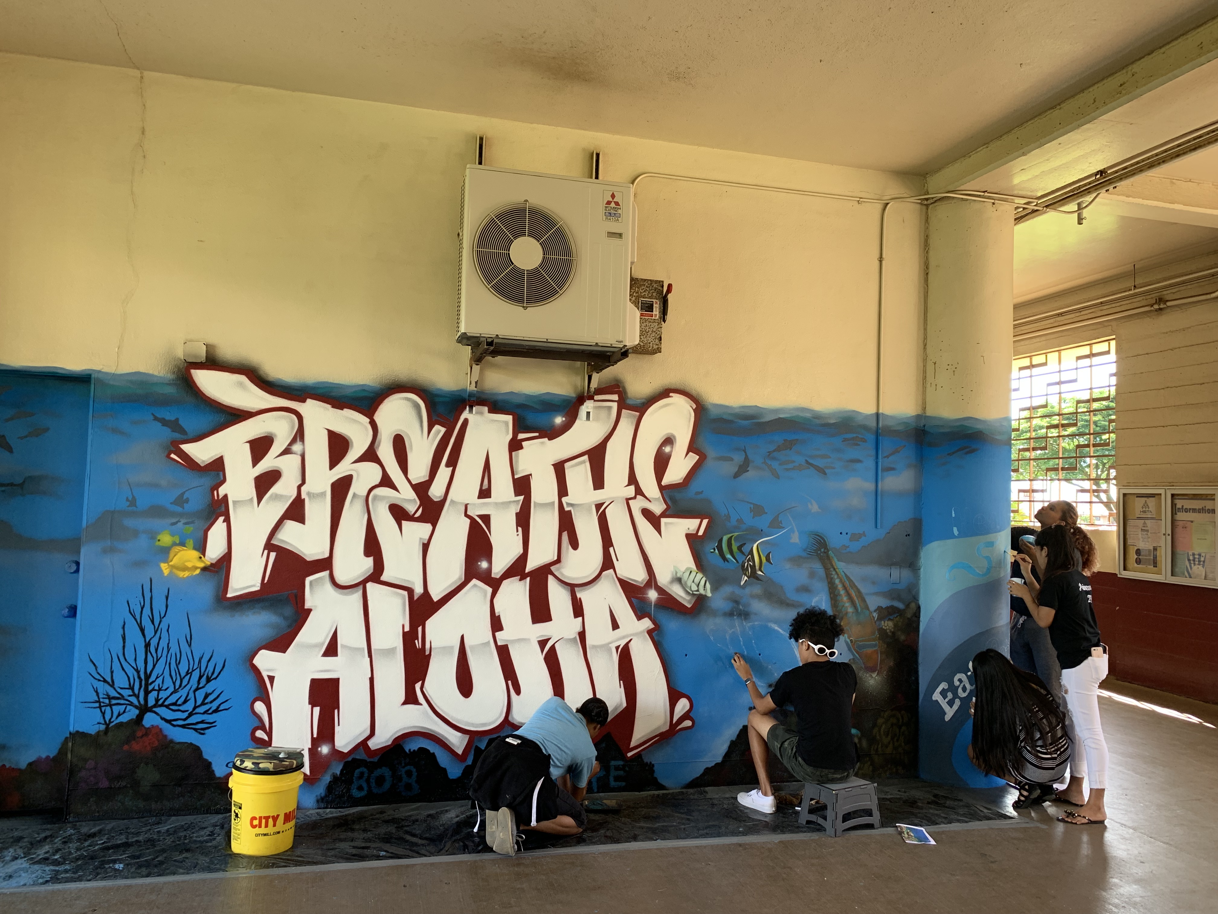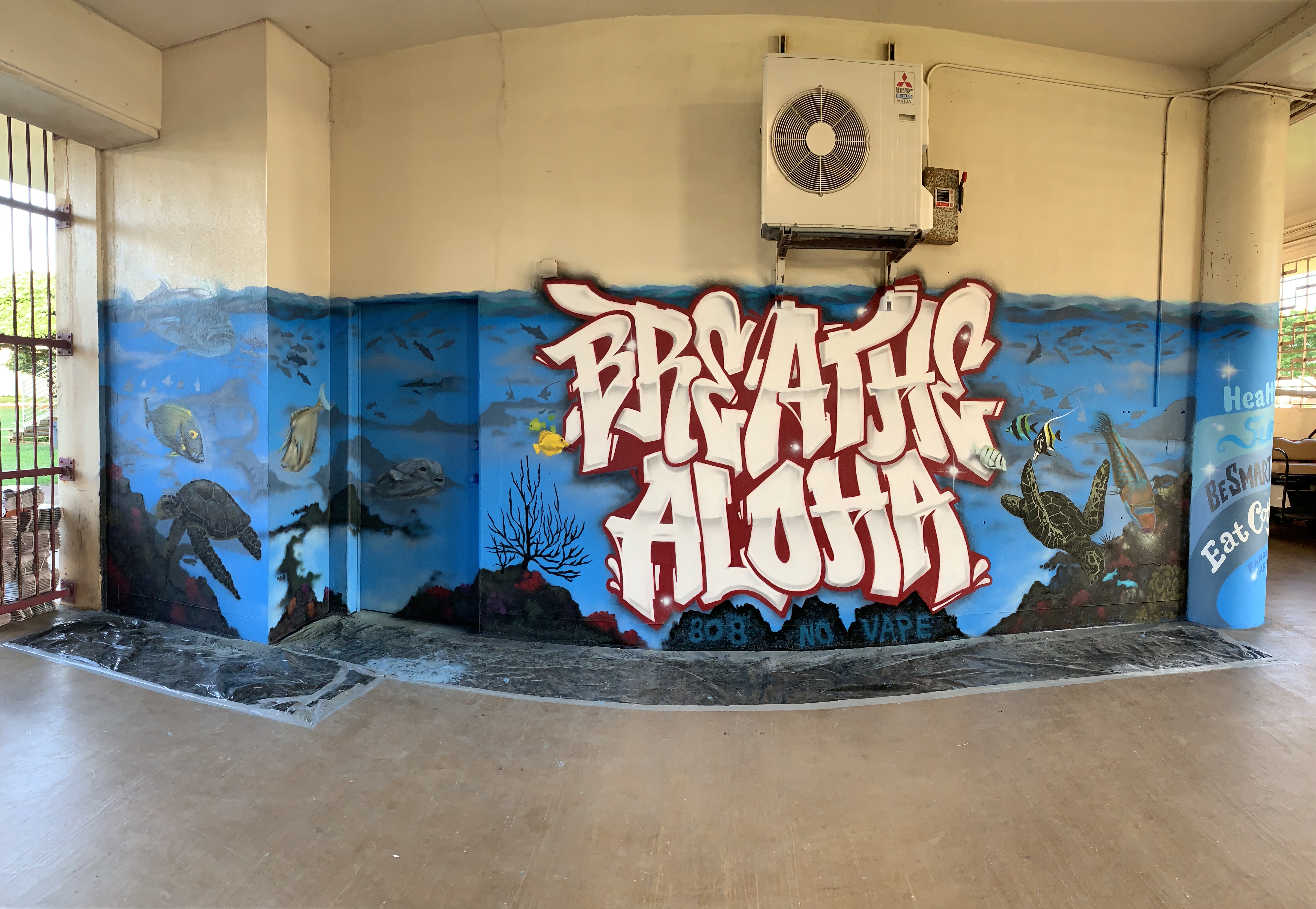 The “Breathe Aloha Mural Tour” (BAMT) is a continuing statewide campaign promoting awareness about youth tobacco “vaping” use. Keep It Flowing’s founder & creative director, Kenneth “East 3” Nishimura, partners with 808 No Vape, a division of Hawaii Public Health Institute (HIPH) to facilitate (3) murals at local Hawai’i high schools during the Fall of 2018.